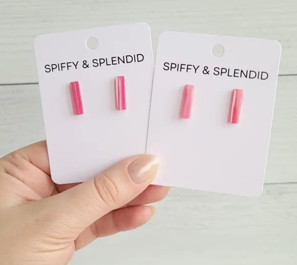 Our bella bar studs are dainty and subtle. They are the perfect accent that you can wear every day. * hypoallergenic stainless steel posts * durable plant-based acrylic