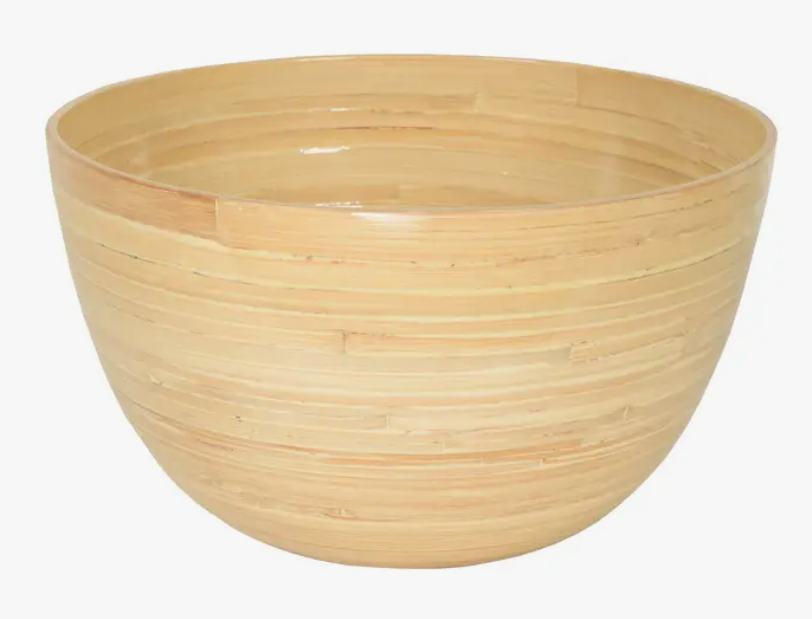 Extra large tall bamboo bowl, size: 11.7" X 7". Food safe. Handmade in Vietnam. Part of our "Classic" line. Do not use in the microwave or dishwasher. For cleaning, use any regular dish soap and and a wet cloth. Each order comes with product care information so the consumer knows the care procedures. All of our Bamboo items are completely food-safe, and are great to use with Salad, Pasta, Soups, Popcorn, etc. Our bamboo products are very durable, and are great to use for indoor and outdoor dining, recreational vehicles, and boats!