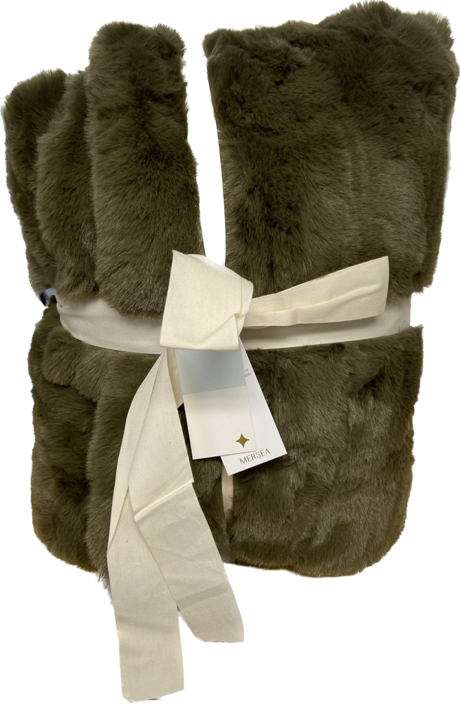 So soft you may not want to share, this plush faux fur throw is luxuriously cozy & comes in 3 colors: Oatmeal, Oxford Blue & Olive.